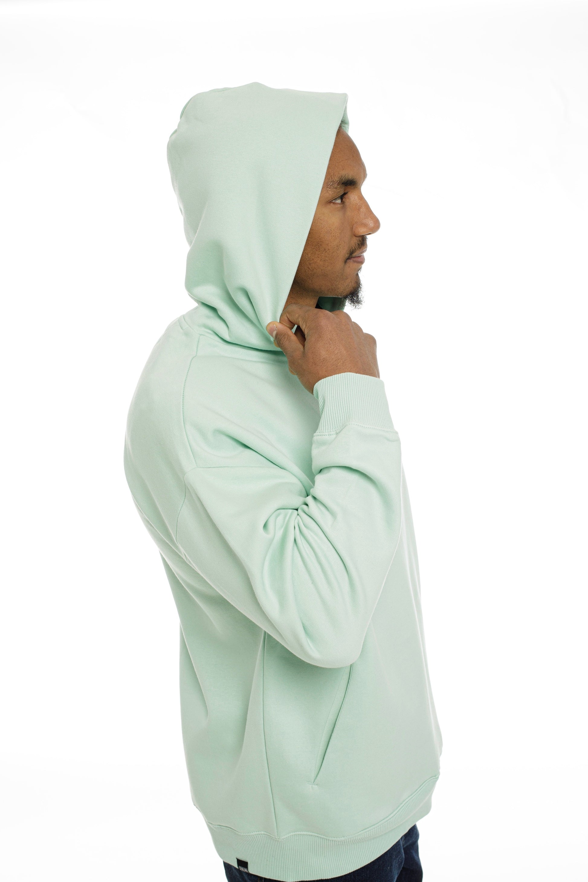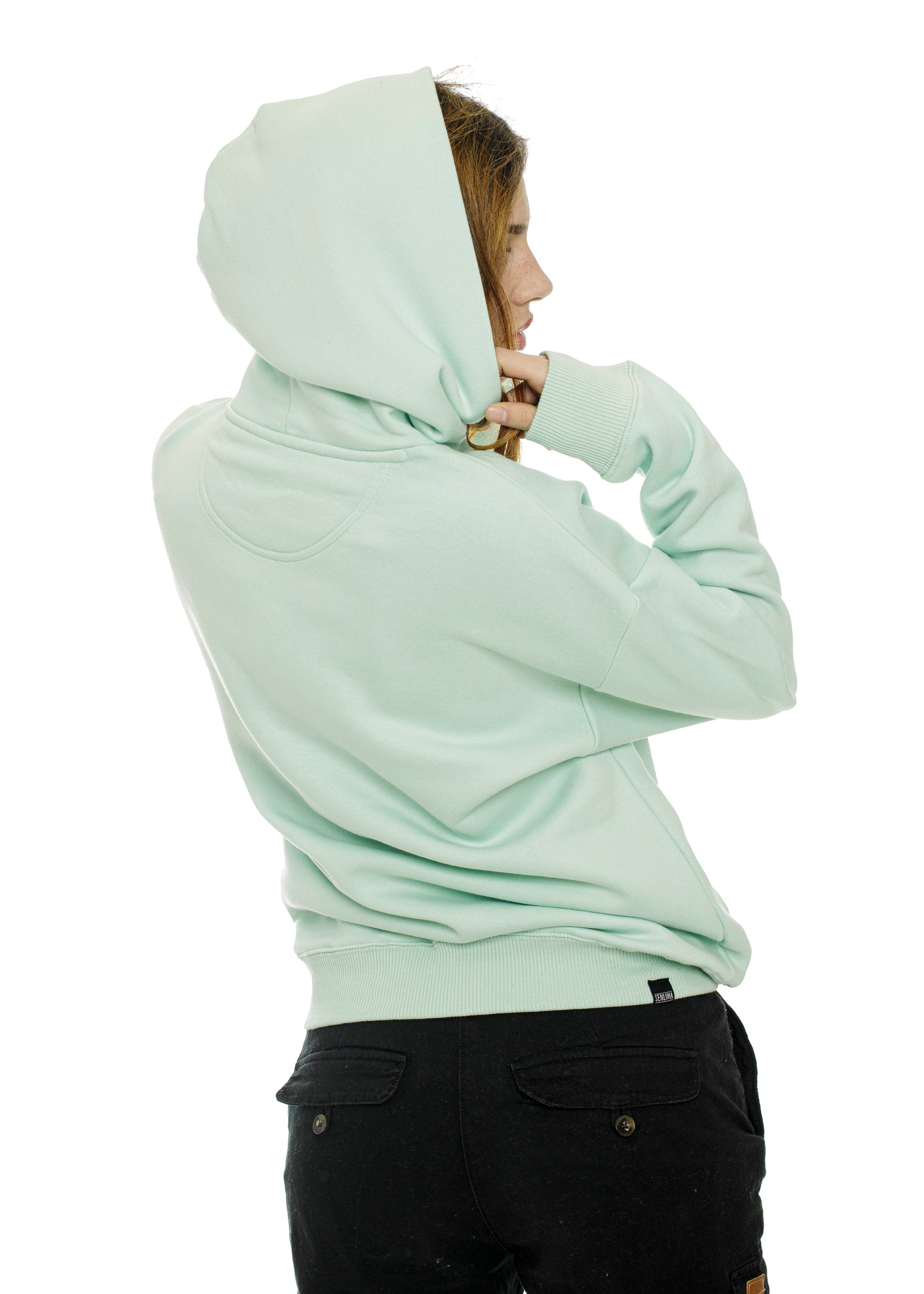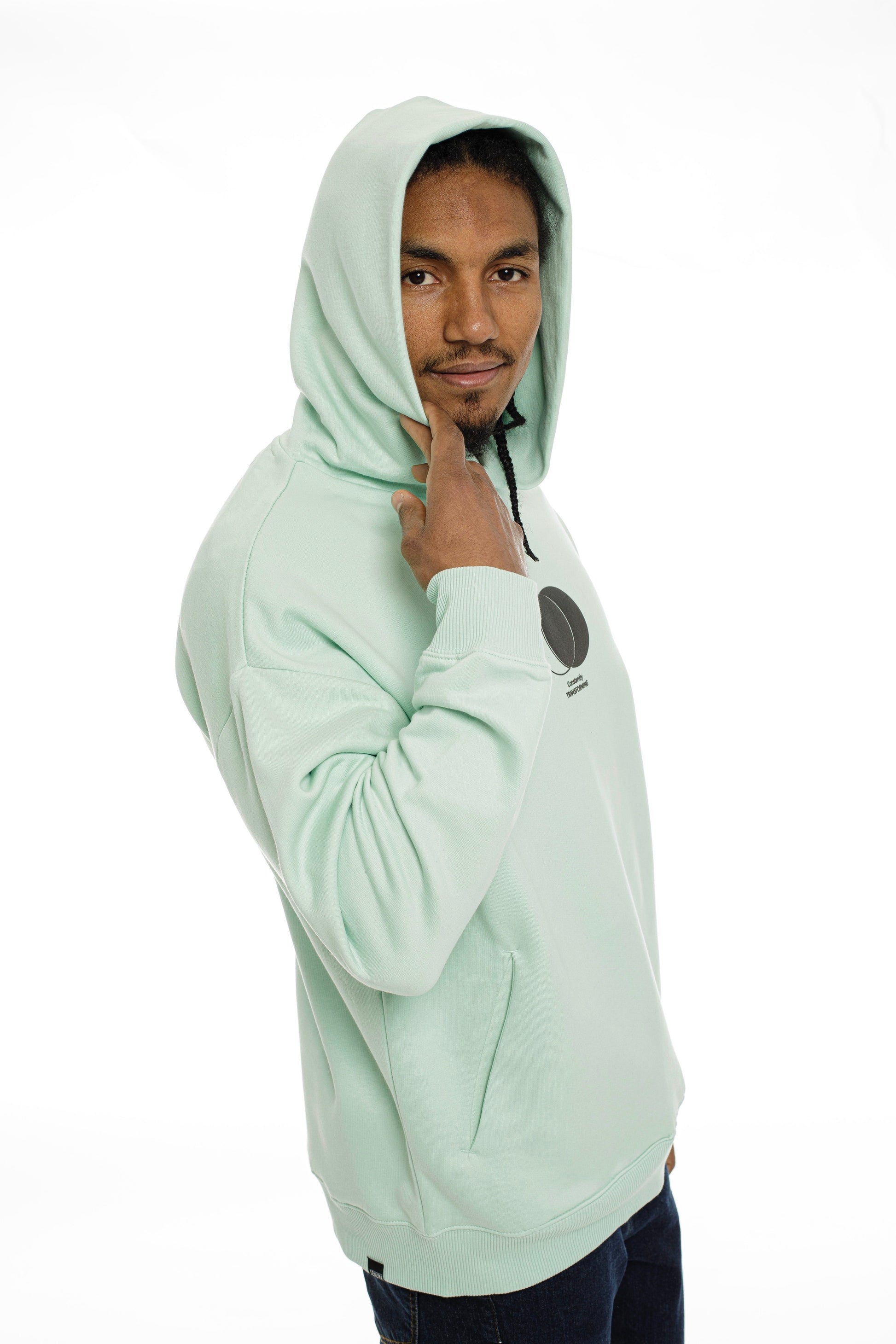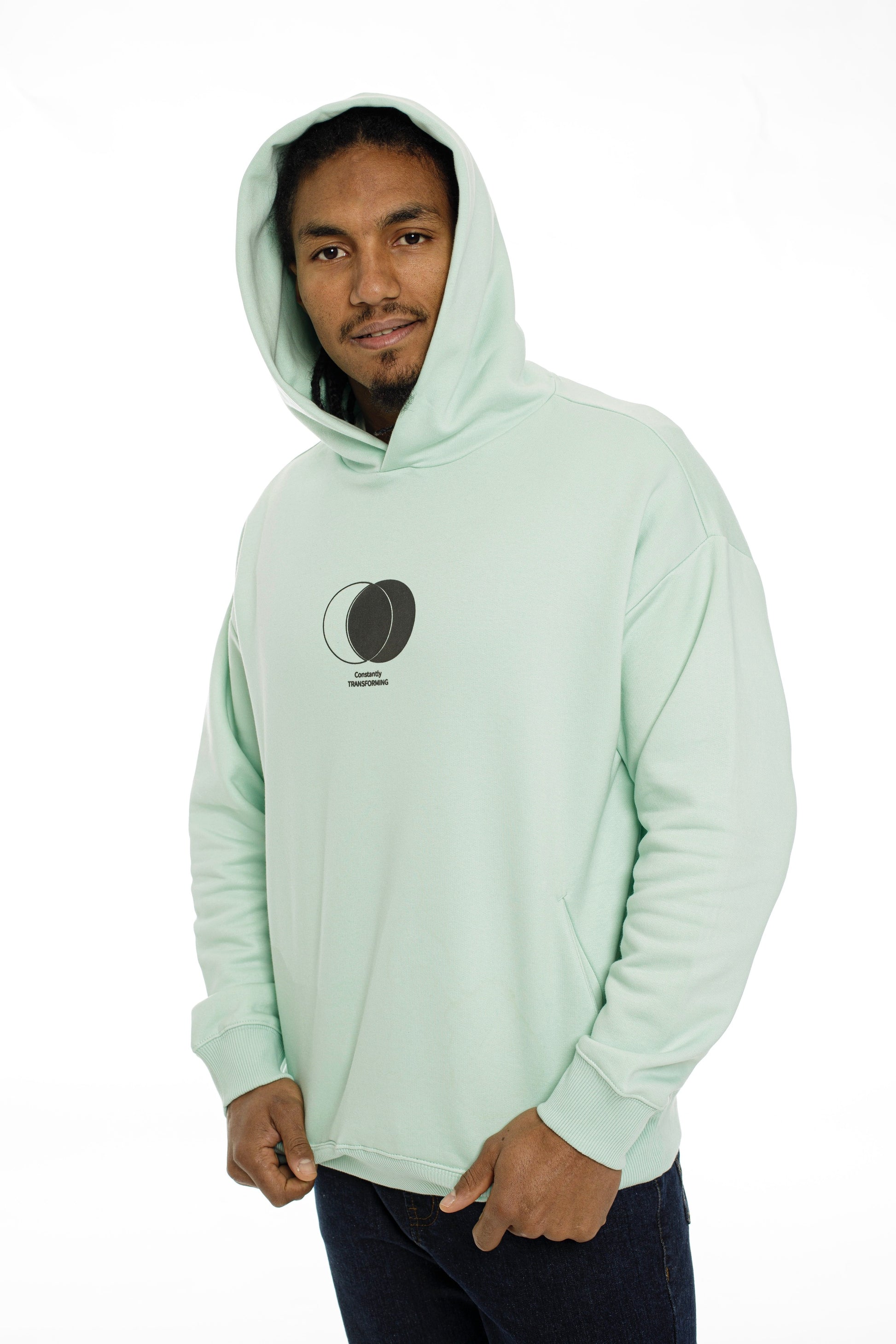 Sudadera verde menta con corte oversize, capucha amplia y tacto muy suave.